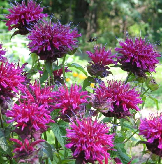 MONARDA DIDYMA PERTENCE À MESMA FAMILIA DAS MENTAS, CRESCE RAPIDAMENTE DURANTE A PRIMAVERA E FLORESCE A SEGUIR, MANTENDO-SE FLORIDA POR LONGA TEMPORADA.