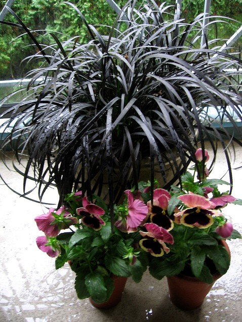 SUAS FOLHAS LINEARES, FINAS, EXTRAORDINARIAMENTE PÚRPURAS-NEGRAS E AS FLORES EM ESPIGAS CURTAS MAS DE UM BRANCO-LILÁS MUITO EXÓTICAS DÃO-LHE LUGAR DE DESTAQUE NAS BORDADURAS DE JARDINS ASSINADOS POR PPROFISSIONAIS DE ENORME PRESTIGIO AO REDOR DO MUNDO.