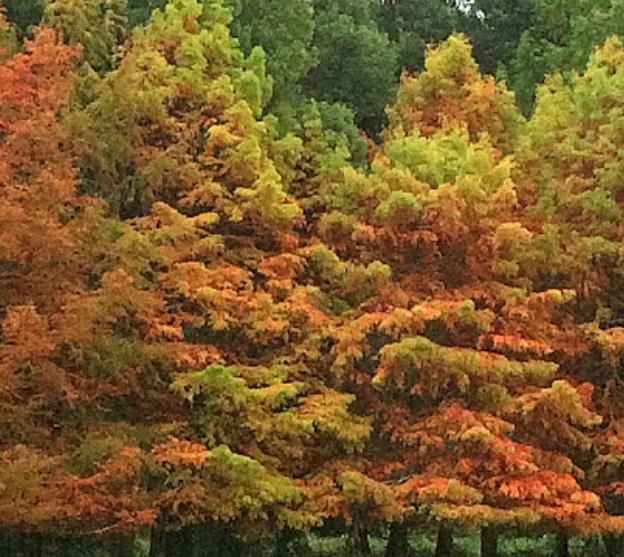 Taxodium em grego significa lembrando teixos (taxus), em referência as árvores de pequenas agulhas do estado de Louisiana.