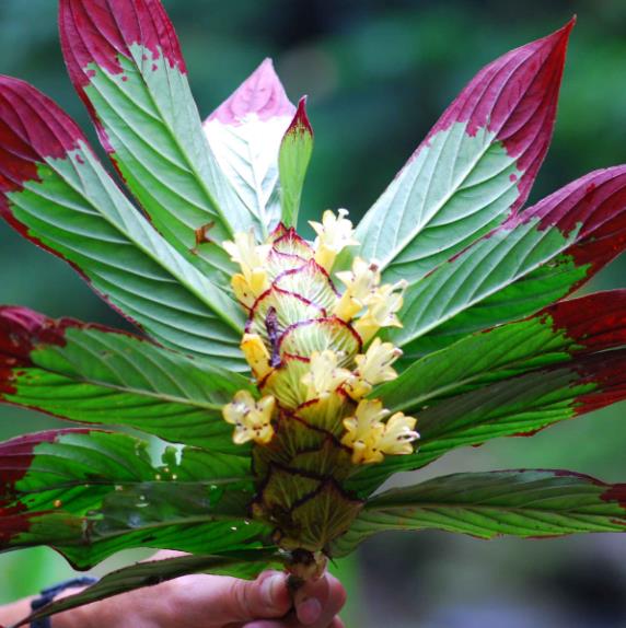 O SEU CONJUNTO DE FLORES E AS BRÁCTEAS COLORIDAS POSSIVELMENTE PODEM FORNECER UM MAIOR ALVO PARA A POLINIZAÇÃO POR INSETOS OU BEIJA FLORES; EMBORA POUCO SE SAIBA SOBRE A HISTÓRIA EVOLUTIVA DESSA ESPÉCIE.
