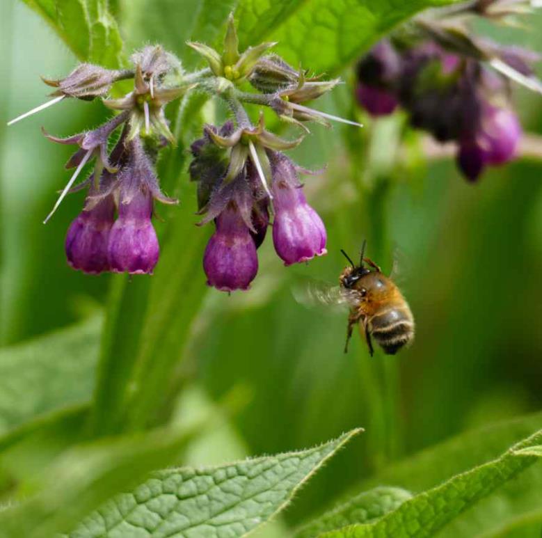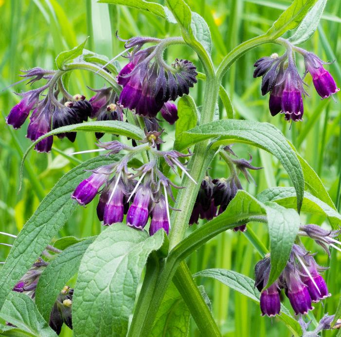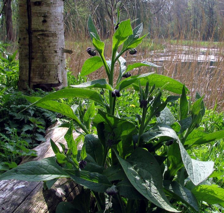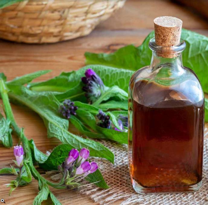 Observações: A quantidade de alcalóides contidos em uma xícara de chá de folhas de confrei varia de 8,5 a 26 mg e das raízes a quantidade é bem mais elevada, o que pode provocar intoxicações graves. O uso interno desta planta se tornou controverso devido ao seu alto conteúdo de alcalóides de pirrolizidina. Entretanto, esta planta vem sendo usada tanto para tratar animais quanto humanos há séculos. Os estudos mais ‘difamatórios’ do confrei utilizam o extrato isolado de simfitina. O uso holístico da planta inteira resulta em preparados com muito menor quantidade de alcalóides de pirrolizidina.