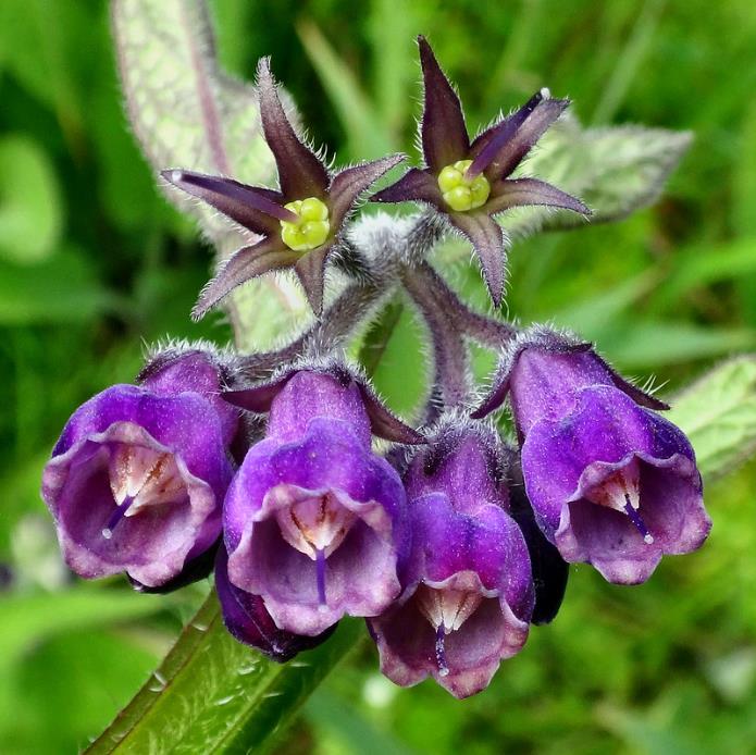 Composição química: Contém mais de uma dúzia de alcalóides pirrolizidínicos (sinfitina, equimidina, elicopsamina, etc.) em concentração maior nas raízes.