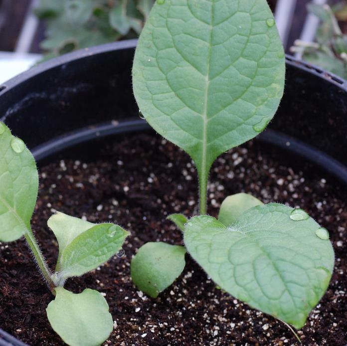 É uma planta herbácea perene de floresta, com caule ramificado (apesar de não aparentes), as folhas são alternadas, oblongo-lanceoladas, grandes, com uma rede de veias salientes por baixo. As flores hermafroditas violeta-púrpura são pequenas em forma de sino tubular, agrupadas em inflorescências nos ramos terminais. O fruto é um tetraquênio de cor negro brilhante. As folhas exalam um leve cheiro de pepino quando esmagadas. Altura da planta pode variar de 50 a 90 cm.