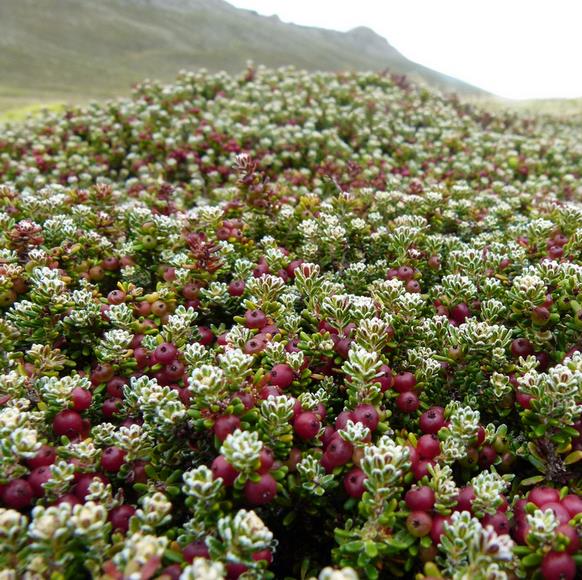 EMPETRUM RUBRUM EM SEU HABITAT DE ORIGEM CRESCE EM ÁREAS ELEVADAS E É ENCONTRADA EM OUTRAS ÁREAS DESDE O NIVEL DO MAR ATÉ 2000 METROS DE ALTITUDE; PODENDO TOLERAR VENTOS FORTES E GEADAS APÓS BEM ESTABELECIDA.