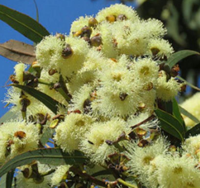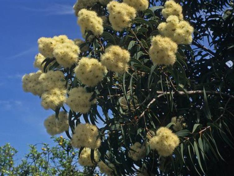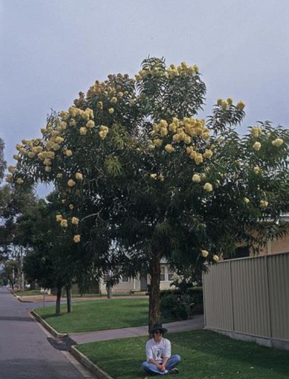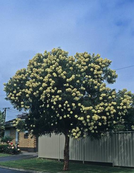 Corymbia eximia nana (yellow bloodwood) apresenta maciça floração terminal (acima da folhagem) amarelo ouro. Esta espécie é encontrada em Nova Gales do Sul (NSW Central) próximo a Sidney.