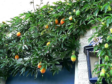 O Maracujá azul é tipicamente cultivado em jardins tropicais pela exoticidade de suas flores e frutos.