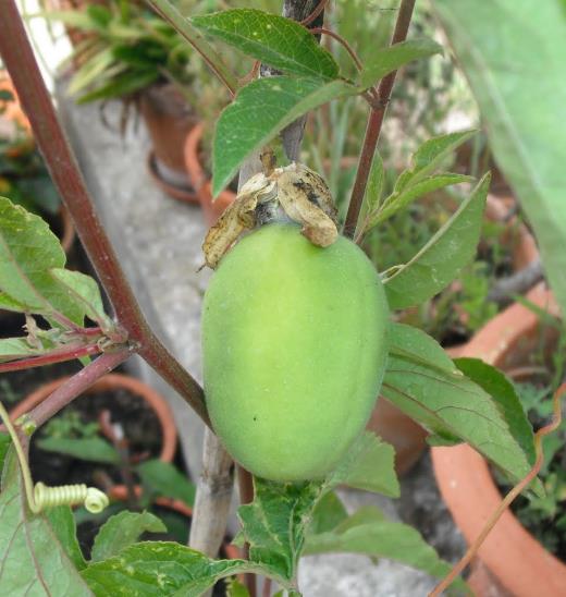 Videira (trepadeira) vigorosa da familia passifloraceae, muito produtiva, as frutas ovais ligeiramente alongadas ficam amarelas-alaranjadas na maturidade e do tamanho de um ovo de galinha com polpa saborosa in natura e também são muito usadas no preparo de tortas e geleias.