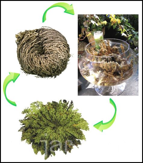 É APÓS AS RARAS CHUVAS, QUANDO O SOLO ESTÁ ÚMIDO, QUE A PLANTA DA RESSURREIÇÃO JUSTIFICA O SEU NOME COMUM, ABSORVE ÁGUA E CRESCE RAPIDAMENTE; À MEDIDA QUE O SOLO SECA, E NÃO PODENDO ARMAZENAR ÁGUA COMO SUAS VIZINHAS SUCULENTAS, TODAS AS FUNÇÕES METABÓLICAS SÃO REDUZIDAS AO MINIMO E PARECE ENTÃO ESTAR MORTA, CONTUDO É APENAS UM ESTADO DE DORMÊNCIA. O CICLO PODE SER REPETIDO INDEFINIDAMENTE.