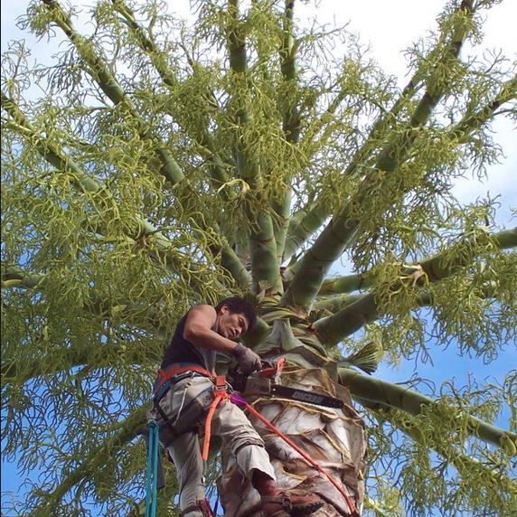 ESTA PALMEIRA É VERDADEIRAMENTE GIGANTESCA EM TODAS AS SUAS PARTES, ALÉM DE SEU ENORME TRONCO, SUA COROA ABRANGENDO CERCA DE 8 METROS DE DIÂMETRO É FORMADA POR CERCA DE 30 FOLHAS VERDE-ESCURAS, É GRANDE O SUFICIENTE PARA ABRIGAR FACILMENTE MAIS DE DEZ PESSOAS DA CHUVA.