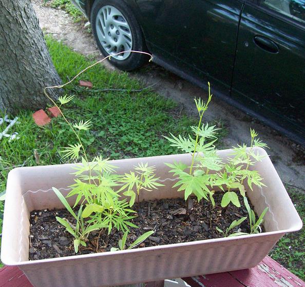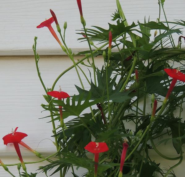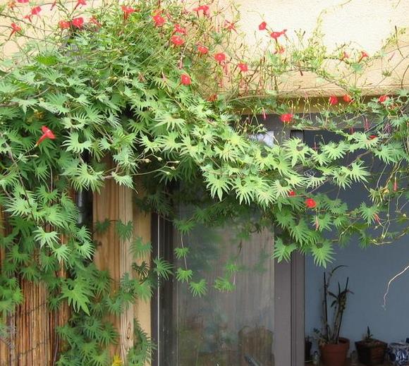Ipomoea multifida ou Ipomoea sloteri Multifida é uma trepadeira com folhas verdes profundamente lobadas, flores vermelhas.