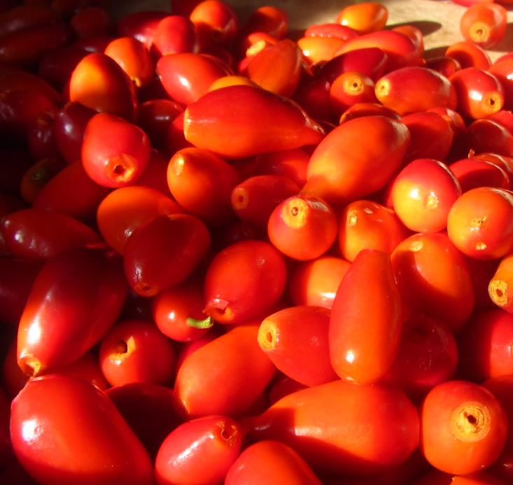 Frutos: laranja-avermelhados