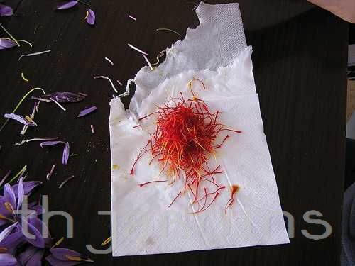 É NECESSÁRIO, 150 FLORES PARA PRODUZIR 1 GRAMA DE AÇAFRÃO, 1 FLOR PRODUZ EM MÉDIA 30 MILIGRAMAS ( 0,46 GR) DE AÇAFRÃO FRESCO OU 7 MILIGRAMAS ( 0,11 GR) DE AÇAFRÃO SECO.